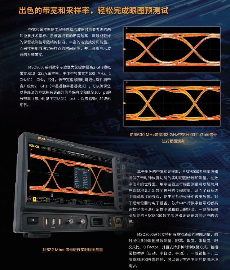 具有500Mpts超大存儲(chǔ)深度、良好的波形顯示效果、優(yōu)異的波形捕獲率和強(qiáng)大的數(shù)據(jù)分析功能,并且支持實(shí)時(shí)眼圖測(cè)量和抖動(dòng)分析,為客戶提供更優(yōu)的測(cè)試解決方案。