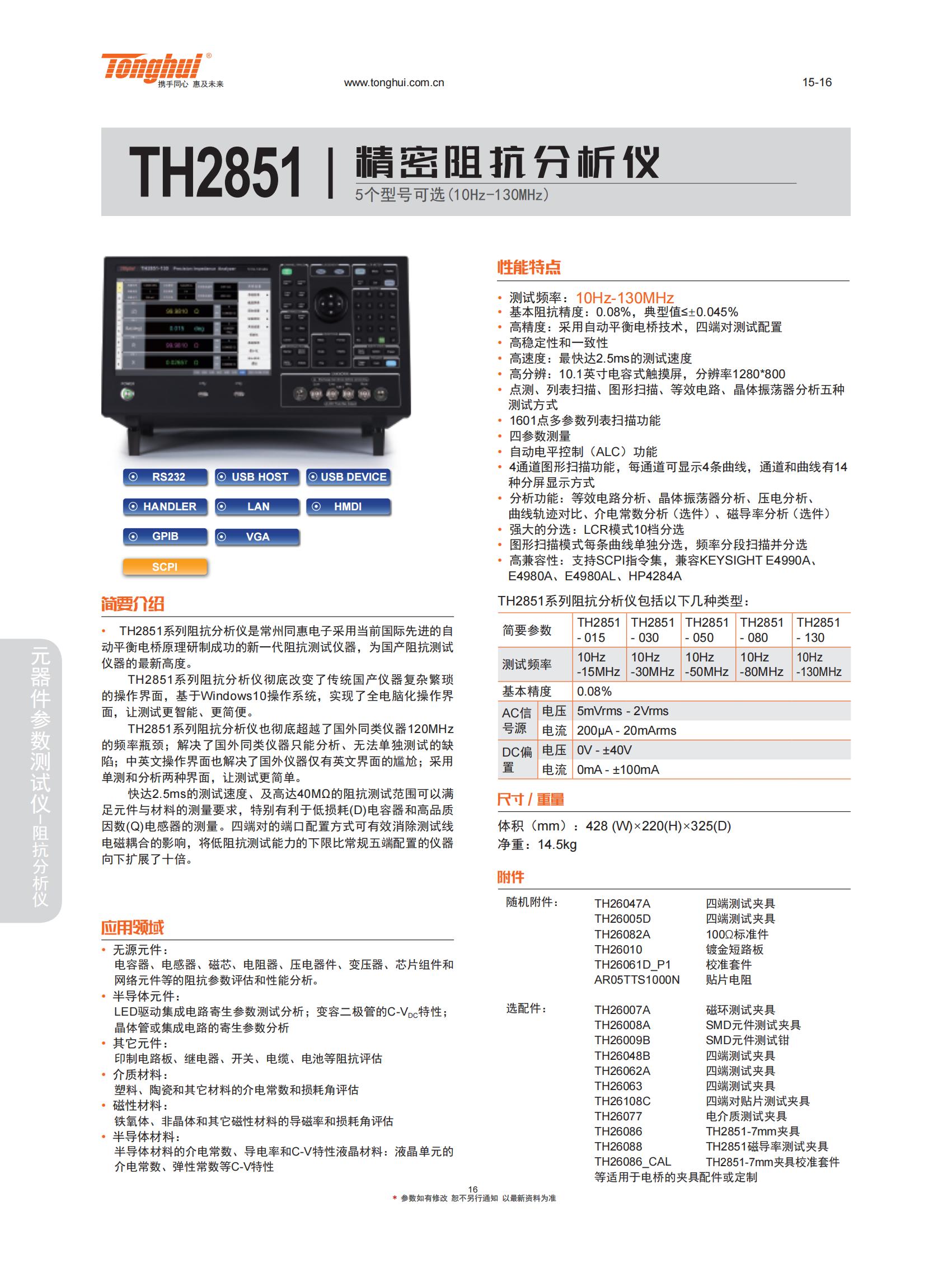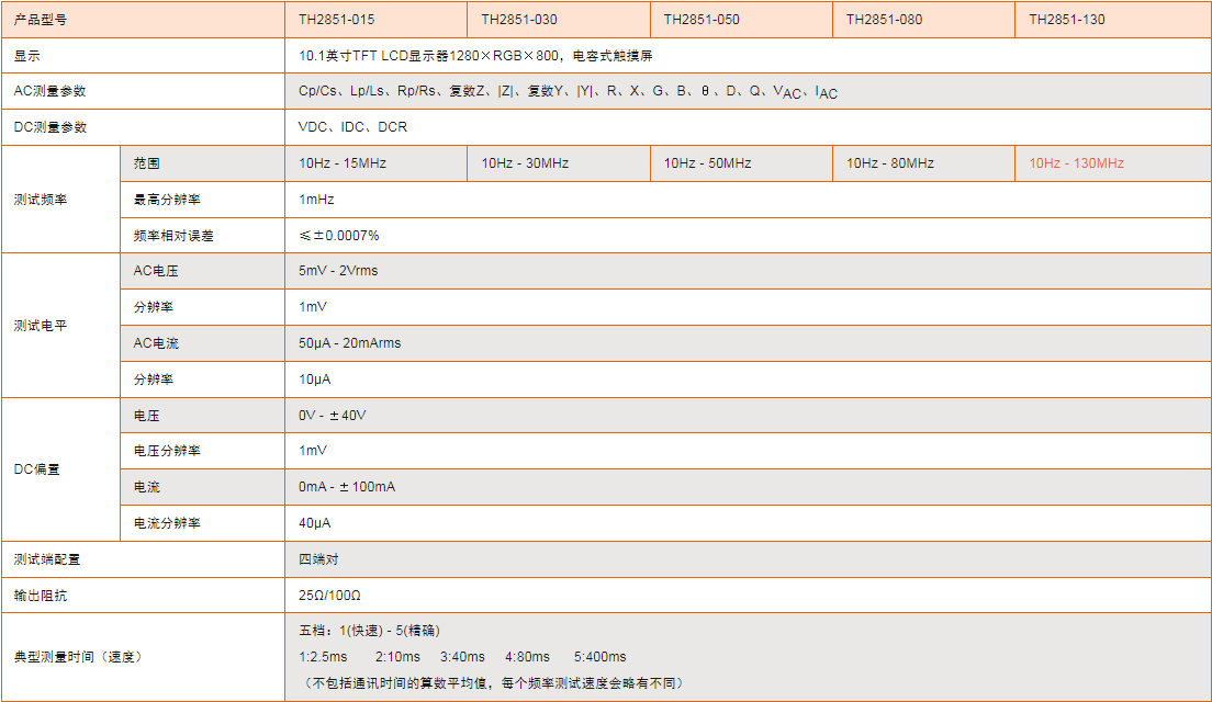 TH2851系列阻抗分析儀也徹底超越了國外同類儀器120MHz的頻率瓶頸;